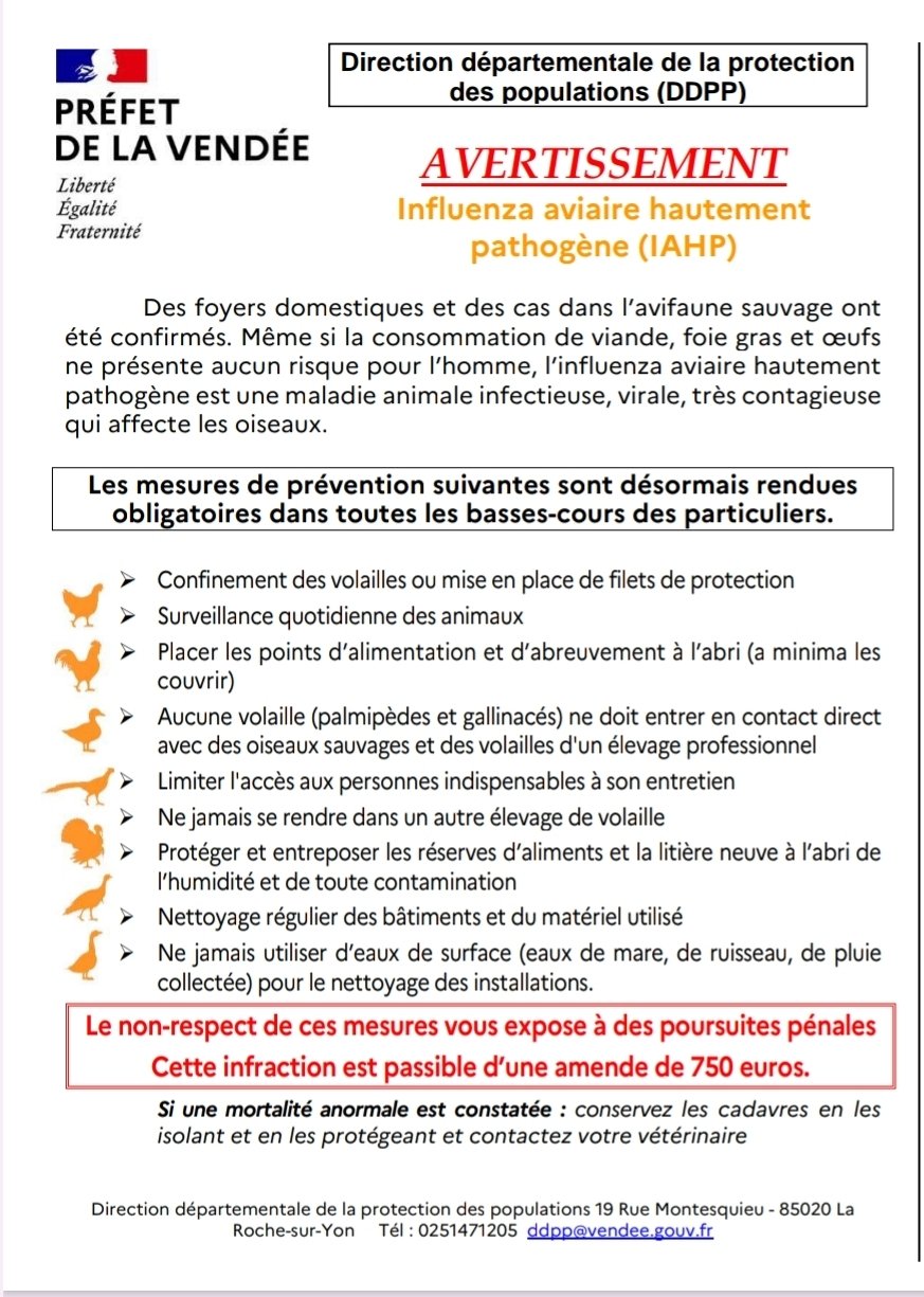 IMPORTANT: INFORMATION IAHP( INFLUENZA AVIAIRE HAUTEMENT PATHOGÈNE).