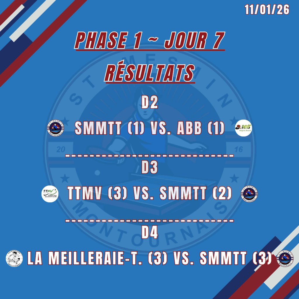 Publié le lundi 12 janvier 2026 - Saint-Mesmin - Montournais Tennis de Table