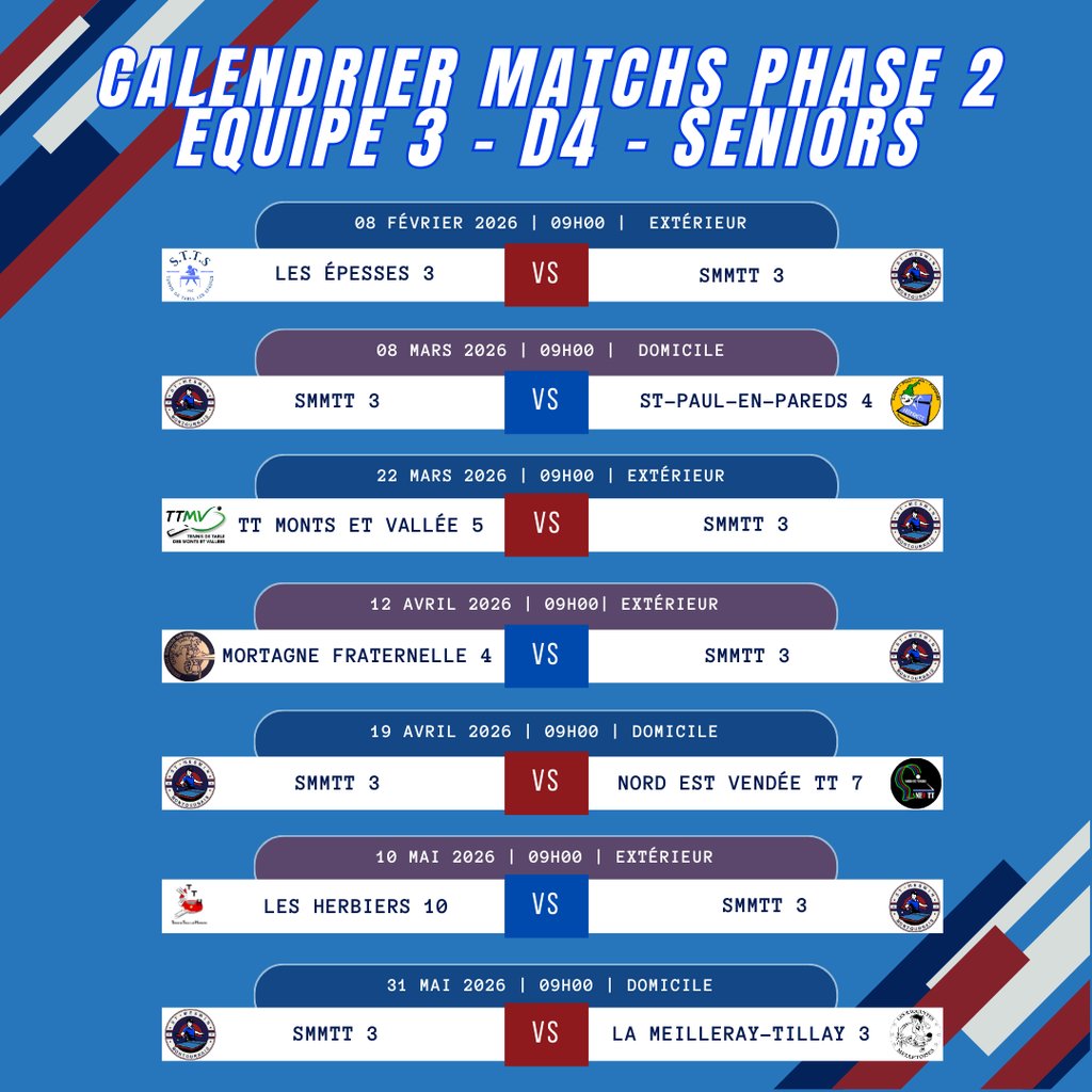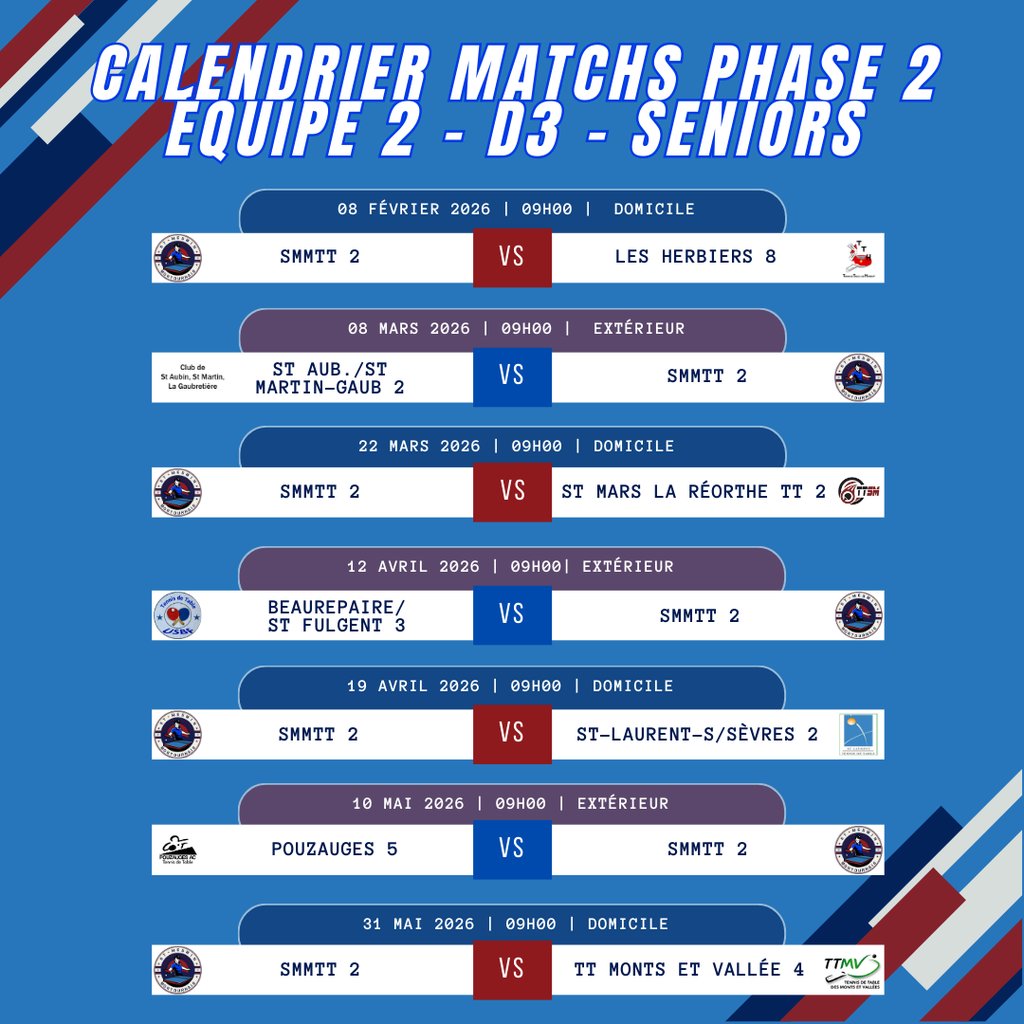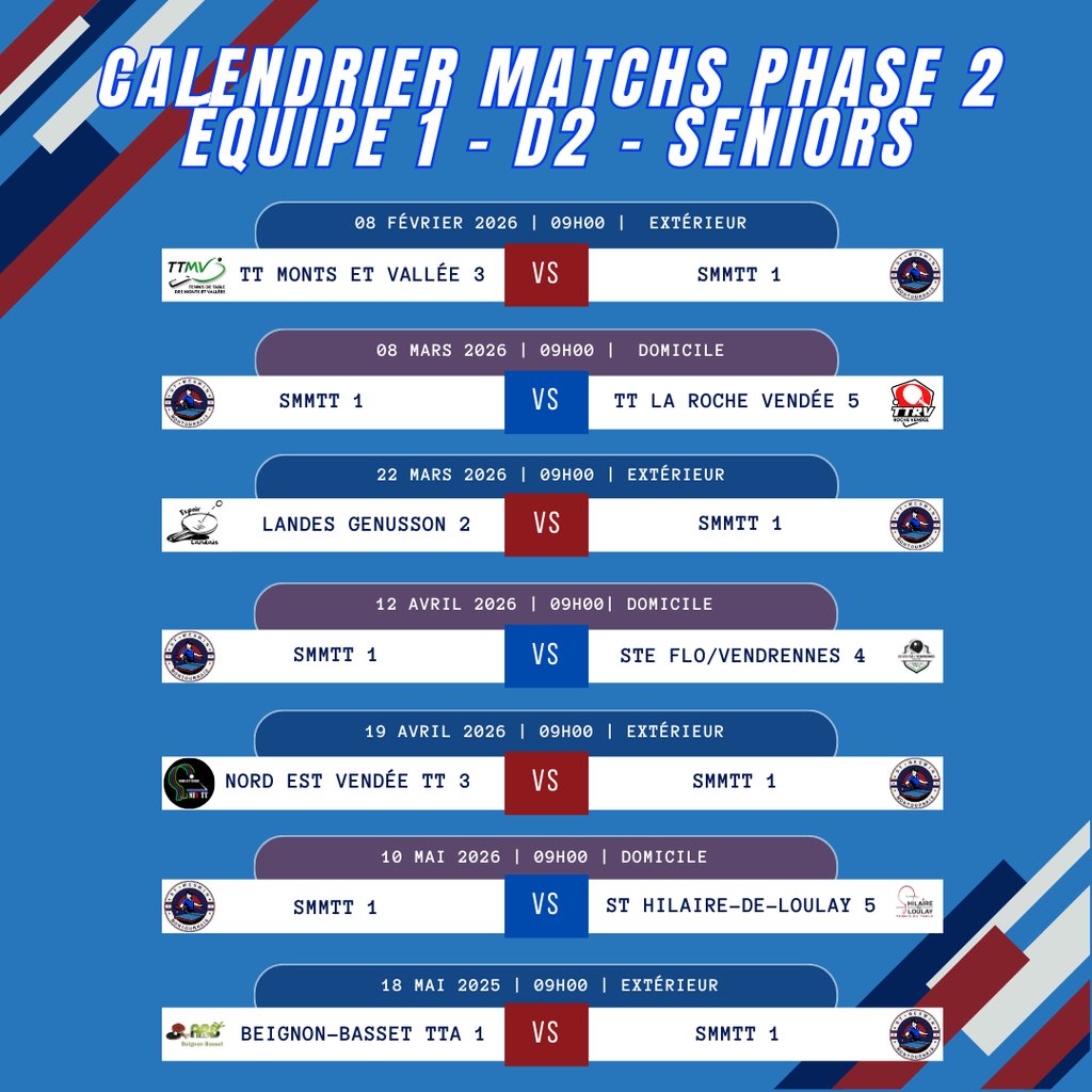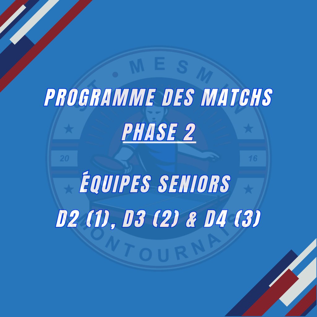 🏓 SMMTT – CALENDRIER PHASE 2 SENIORS 🔵