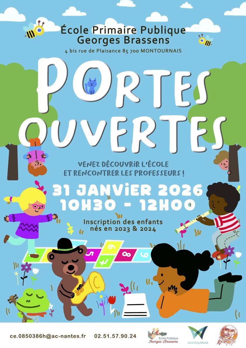 L'école publique Georges Brassens ouvre ses portes samedi 31 janvier 2026 de 10h30 à 12h00.
