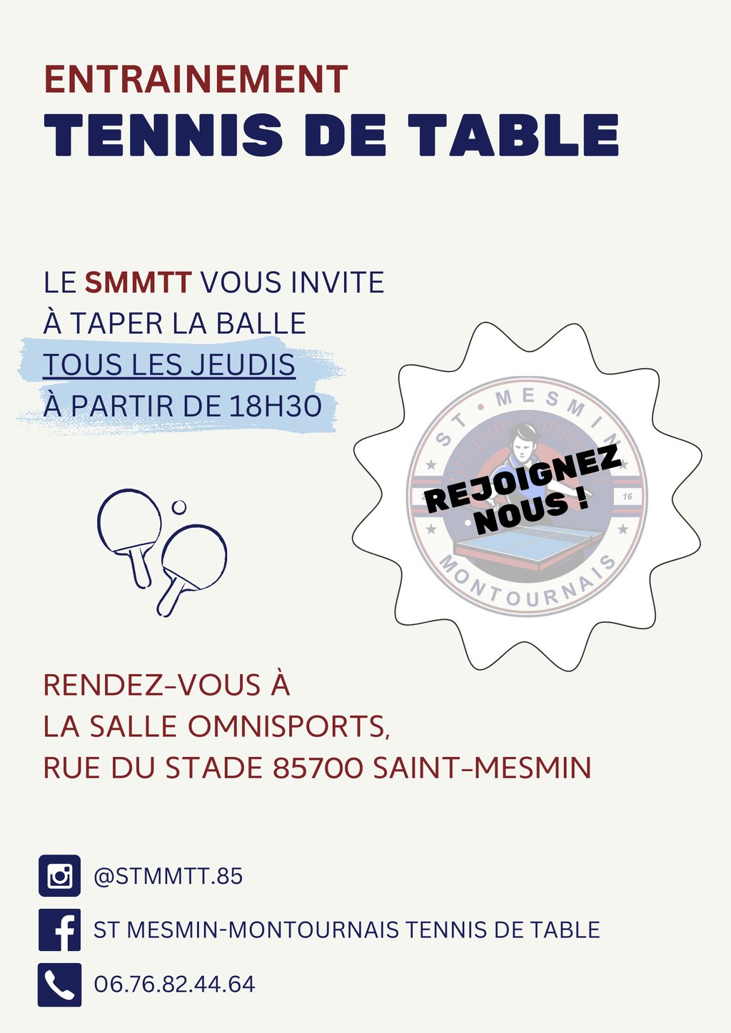 🏓 Entraînement de Ping-Pong au SMMTT : Rejoins-nous ce jeudi ! 🔵