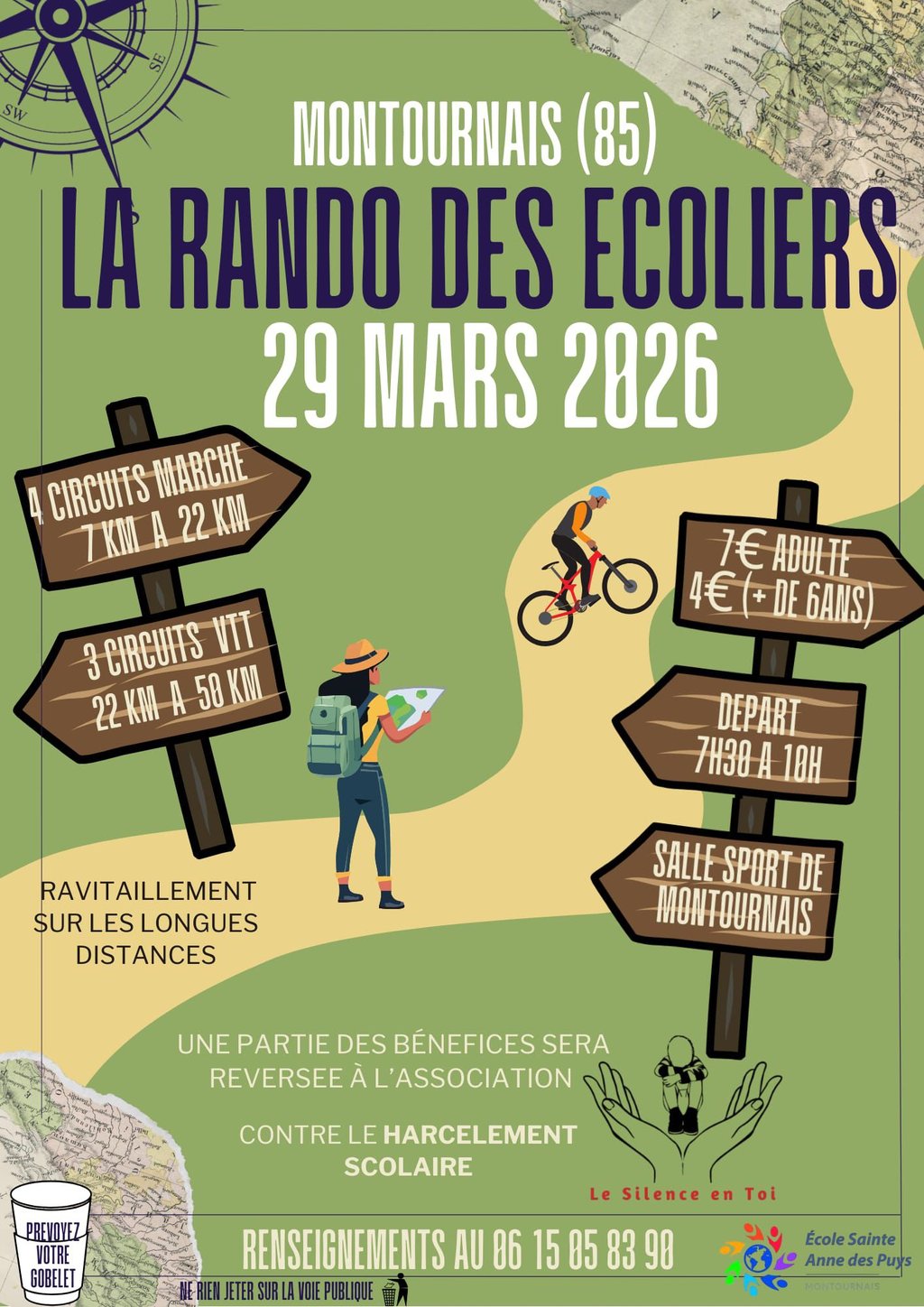 Nouvelle édition de la Randonnée de l'école Ste Anne Des Puys avec l'association le Silence en toi qui lutte contre le harcèlement scolaire sera là, 1euro par participant sera reversé à l'association.